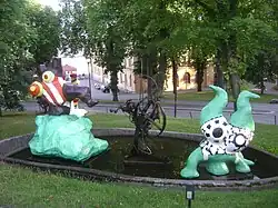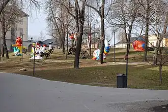 Although the French Pavilion itself was popular, most visitors did not see the rooftop terrace where the sculptures were installed.[61] In 1968, the sculptures were re-displayed at the Albright-Knox Gallery in Buffalo, New York, and then for a year in New York City's Central Park.[58][53][61] In 1971, some of the artworks were purchased by the Moderna Museet, and permanently installed nearby in an outdoor sculpture garden on Skeppsholmen, an island in central Stockholm.[61][53][62]