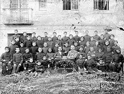 Karev completed his early education at the Bulgarian Exarchist school in Kruševo and in 1893 moved to Sofia, the capital of Principality of Bulgaria, where he worked as a carpenter for the socialist Vasil Glavinov. Karev joined the Socialist group led by Glavinov, and through him, made acquaintance of Dimitar Blagoev and other socialists, and became a member of the Bulgarian Workers' Social Democratic Party. From 1896 he participated in the Macedonian-Adrianople Social Democratic Group, created as part of the Bulgarian Workers' Social-Democrat Party.[11] In 1898 Karev went back to Ottoman Macedonia and graduated from the Exarchist gymnasium in Bitola. From 1900 he worked as a schoolmaster in the Exarchist schools in the village of Gorno Divjaci and in his native Kruševo.[12][13][10]