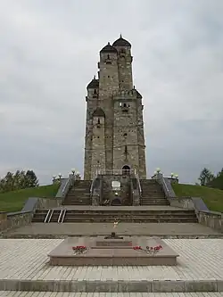 The "Nine Towers" Memorial (Ingush: Ийс гӏала, Russian: Девять башен) is a memorial building located in Nazran, Republic of Ingushetia, dedicated to the victims of genocide and political repression in the Soviet Union. It is the main structure of the entire memorial complex, which displays the most significant dates, tragic and solemn events in the history of the Ingush people.[1]
