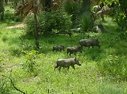 Other mammals include roan antelope, Guinea baboon, green monkey, patas monkey, and warthog.