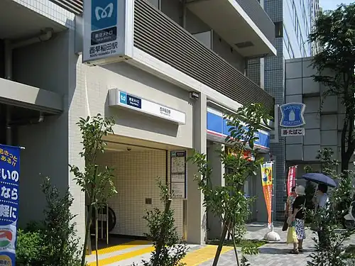 Nishi-waseda Station (西早稲田駅, Nishi-waseda-eki; lit. "West Waseda Station") is a subway station on the Tokyo Metro Fukutoshin Line, in Shinjuku, Tokyo, Japan, operated by the Tokyo subway operator Tokyo Metro. Its station number is F-11. The station opened on June 14, 2008. This station is directly connected to Nishiwaseda Campus of Waseda University in Shinjuku, Tokyo.[1]