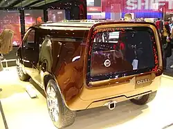 The Nissan Bevel was a concept crossover SUV unveiled at the 2007 North American International Auto Show.[1] It was of asymmetrical design, with regular front and rear doors on the passenger side, but just one large driver's side door.