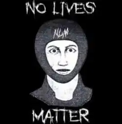 No Lives Matter (NLM) is a misanthropic, neo-Nazi online group that advocates for violence, terrorism and the destruction of humanity. Its core principles are radical nihilism and anti-humanism. The organization gained notoriety for its actions in the form of attacks, including a knife attack on a pensioner.[2] NLM also released violent manifestos explaining their philosophy, as well as advice on assault and murder.[3][1][4] The name "No Lives Matter" is a reference to the Black Lives Matter movement.[5]