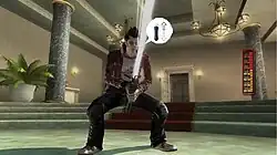 Most attacks are performed using a standard control scheme, with certain other moves, including the "death blow" and sword lock struggles, executed by following on-screen instructions. The beam katana can also be upgraded and replaced throughout the game by visiting Dr. Naomi. While the katana does not follow the exact position of the remote, it is able to distinguish between a "high" and "low" position which varies the character stance and the attacks done. In addition to attacks with the beam katana, Travis can kick and punch, and when enemies are stunned, he can throw them with a number of professional wrestling maneuvers, which were previously done by manipulating both the Wii Remote and Nunchuk. Travis has a secondary mode, "Dark Side", that is accessed when three icons line up in a slot machine after a successful death blow.