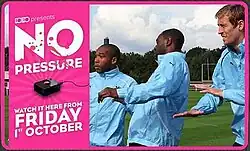 ![]() Promotional banner for No Pressure displayed on the 10:10 website prior to the film's release | |
