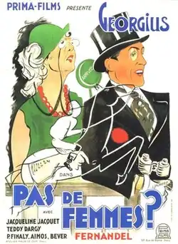 No Women (French: Pas de femmes) is a 1932 French comedy film directed by Mario Bonnard and starring Georgius, Fernandel and Raymond Aimos.[1] [2] [3]