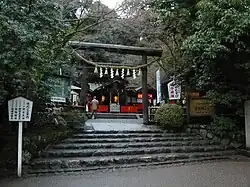![]() The Torii gate at the front entrance of the Nonomiya Shrine in Kyoto, Japan | |