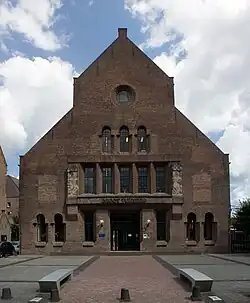 The first location of the library of the Provincial society for Arts and Sciences was on the first floor of the Latin School on the Papenhorst.[4] The society would become famous for this library, which included many manuscripts, but also some collections of coins and curiosities. In 1855 the society moved to the upper floors of the new building of the school, which had been rebranded as city Gymnasium (school). This provided suitable accommodation, not only for the library, but also for other work of the society.[5] In 1868 the society was forced to move to new, but less suitable accommodations on the upper floor of the Butter hall on the market.[6] It kind of limited the activities of the society on its own premises to the library function.