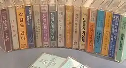 Some of the early songs were called 'Demo-gas' (demonstration songs) and others were called minjung-gayo (Korean protest songs).[3] There were also 'Haebang-ga' (Hangul: 해방가), 'Tana-Tana' and 'Barami-bunda' (Hanguel: 바람이 분다), to name a few. After 1975, 'Hula-song' and 'Jungui-ga' were added to the list.[3]