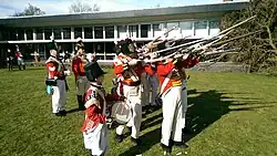 By August the divisions of the two battalions were alternately guarding prisoners of war and undergoing training.[39] While at Hilsea Barracks, Portsmouth, Windham published a drill manual, A Plan of Discipline, Composed for the Use of the Militia of the County of Norfolk, probably drawing on Townshend's knowledge, and which Townshend revised in 1768 after Windham's death.[45][46][47][48] This is said to have become one of the most important drill manuals employed during the American Revolution.[49]