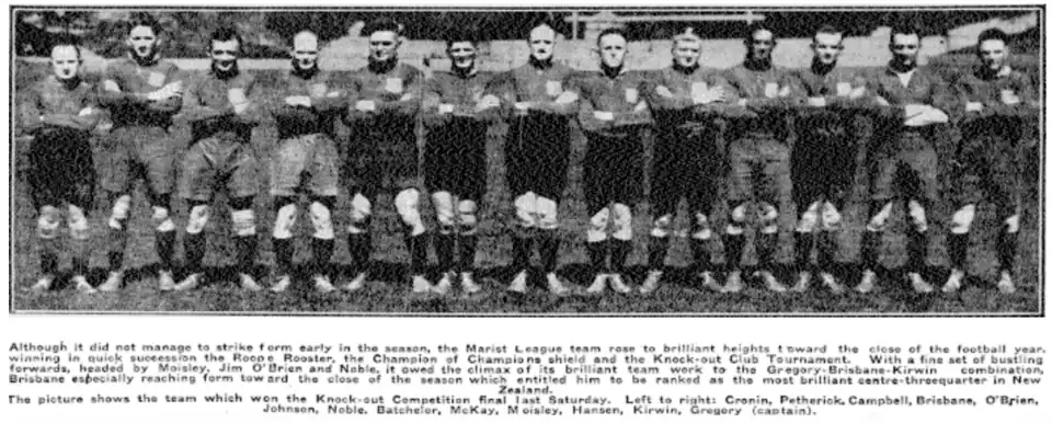 - ^ "Champions of Champions/Marist Defeats Ponsonby/Twenty Eight Points to 14". The New Zealand Herald. Vol. LXVI, no. 20373. 30 September 1929. p. 12. Retrieved 9 October 2019.