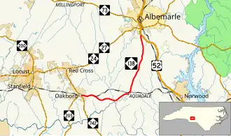 North Carolina Highway 138 (NC 138) is a primary state highway in the U.S. state of North Carolina. It serves to connect the community of Aquadale to nearby Oakboro and Albemarle.