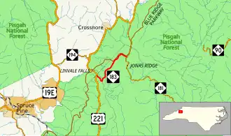 North Carolina Highway 183 (NC 183) is a primary state highway in the U.S. state of North Carolina. It traverses from US 221, in the community of Linville Falls, to NC 181, near the community of Jonas Ridge.