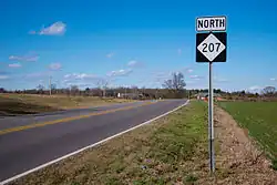 From the North Carolina-South Carolina state line, NC 207 is a two-lane rural highway traversing north through rolling hills of farmland. Once it enters Monroe city limits, it becomes Haynes Street, where it connects several neighborhoods until it reaches the downtown business district. At Franklin Street, the road widens to four-lanes. At Church Street, it becomes Skyway Drive, continuing over the CSX rail yard it continue due north till it reaches Roosevelt Boulevard, where NC 207 ends at an interchange with US 74, US 601, and NC 200. Outside Monroe city limits, it is known and labeled as Wolf Pond Road.[1]
