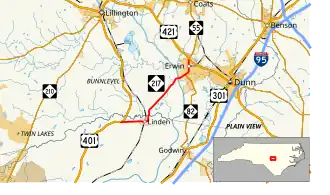 Harnett | Erwin | 8.4 | 13.5 | ![]() ![]() | East end of NC 82 overlap |