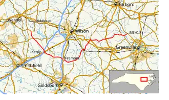 Wilson | Stantonsburg | 33.5 | 53.9 | ![]() ![]() | North end of NC 58 overlap |