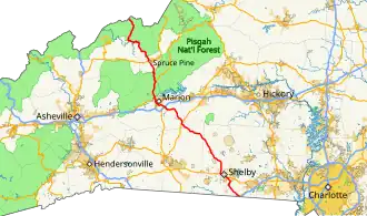 | 14.3 | 23.0 | Shelby Bypass – Asheville | ||