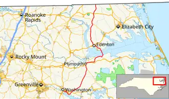 North Carolina Highway 32 (NC 32) is a primary state highway in the U.S. state of North Carolina; it goes through several counties and small communities in the northeastern Inner Banks part of the state. It is 103 miles (166 km) in length,[1] and crosses the Albemarle Sound south of Edenton, along with NC 37 and NC 94. The highway continues into Virginia as SR 32.