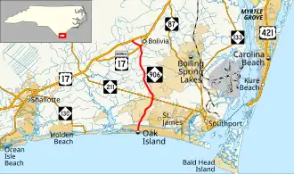 North Carolina Highway 906 (NC 906) is a primary state highway in the U.S. state of North Carolina. It serves as an access and evacuation route for Oak Island.