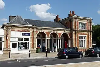 The station was designed in a hybrid classical style by Charles Barry Jr. and built in 1868 by the London, Brighton and South Coast Railway. It is listed Grade II on the National Heritage List for England as is the K6 telephone kiosk inside the portico of the station.[2][3]