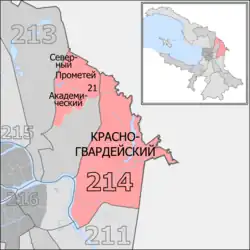 The North East constituency (No.214[a]) is a Russian legislative constituency in Saint Petersburg. Initially created in 1993, North East constituency covered northeastern Saint Petersburg but 1995 it was sacrificed to create Eastern constituency. However, North East constituency was restored in 2016 from parts of Eastern and Northern constituencies.