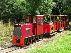 ![]() Hunslet locomotive No. 7120 Bullfinch with a train on the museum's railway | |