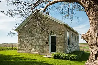 The North River Stone Schoolhouse is a historic building located north of Winterset, Iowa, United States. Built in 1874 of coursed native limestone, the one-room schoolhouse educated local students until it closed in 1945.[2] The building features quoining on the four corners of the exterior, four windows capped with stone lintels on the east and west elevations, and an off-center doorway on the main (south) facade. From 1962 to 1973 the building was restored, and it opened as a school museum operated by the Madison County Historical Society. The building was listed on the National Register of Historic Places in 1977.[1]