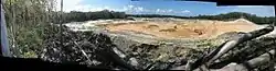 Mining began in the 1950s on the beachfront and this caused minimal disruption to the environment. However, as mining moved into the interior of the island in the late 1960s and increased in scale and size in the 1970s, the impact on Stradbroke's ecosystem increased with Consolidated Rutile Limited (CRL) starting dredge-mining on Stradbroke's high dunes. There are several accounts from sand mining employees of unusual artifacts being found during dredging operations. Dredge mining involves levelling the high dunes and stripping vegetation to create the dredge pond and this dramatically changed the landscape of Stradbroke. The dredge is continually moving, leaving the tailings sand, so, although the mined dunes are revegetated and stabilised, the original ecology of the Island cannot be replaced.[25] As an alternative, development of the island for seaside residential use was mooted and in 1970 a bridge from the mainland via Russell Island was under serious consideration by the Queensland government. The Queensland Government also proposed a large-scale redevelopment of the island in the mid-1980s which would have seen the population of the island increase tenfold. However, after a concerted bid by conservationists and planners concerned at the impact on wetlands, fish breeding grounds and the impact of population growth, the idea fell from favour in February 1986 when Premier Bjelke-Petersen ruled the idea was not "financially viable".[46]