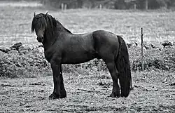 The North Swedish Horse or Swedish: Nordsvensk Brukshäst is a Swedish breed of small heavy horse. It is closely related to the similar Dølehest breed of Norway.[4]: 282 It was traditionally used for forestry and agricultural work. Lighter lines are bred for harness racing, and are registered in the stud-book of the Svensk Kallblodstravare (Swedish Coldblood Trotter).[3]: 482 [5]