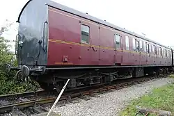 The three ex-British Rail Mk1 carriages are used for the passenger trains. They were used on the Kings Cross suburban lines. They wear BR Midland Maroon Livery.[31] They were preserved by the Bluebell Railway between 1973 and 1975, and were obtained by the museum in 1986.[15][16][17]