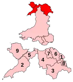 North Wales (Welsh: Gogledd Cymru) is an electoral region of the Senedd, consisting of nine constituencies. The region elects thirteen members, nine directly elected constituency members and four additional members. The electoral region was first used in the 1999 Welsh Assembly election, when the National Assembly for Wales was created.
