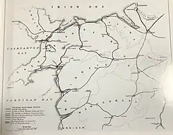 The line from Dinas Junction to Rhyd Ddu was built, with a short branch from Tryfan Junction to Bryngwyn, and operated, but this was just a small part of the grand scheme for a network of narrow-gauge railways spanning much of northern Wales. The North Wales Narrow Gauge Railway was intended to run from Caernarvon via Beddgelert to Portmadoc (where it would link with the Festiniog), with a second and very long line from Beddgelert to Bettws-y-Coed and across a long stretch of open country to Corwen, totaling some 60 miles had these lines been built. All lines were specified to be of a gauge between 2 ft. and 2 ft. 9 in., though the railways proposed were not all connected. The master plan to link almost all the larger places in north-west Wales by narrow-gauge railway included the following proposed lines:
