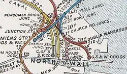The associated freight depot remains actively in use through many of its constituent yards have closed from the 1970s.[8] North Wall in a freight context will refer to the freight yard.