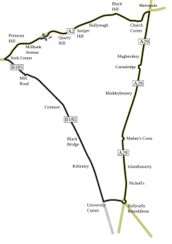 - ^ New Safety Improvements at Mather’s Cross and Station Corner Archived 20 May 2010 at the Wayback Machine North West Official Website 27 April 2010 Retrieved 8 May 2010