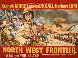 North West Frontier (USA: Flame Over India; Australia: Empress of India)[3] is a 1959 British Eastmancolor adventure film starring Kenneth More, Lauren Bacall, Herbert Lom, Wilfrid Hyde-White and I. S. Johar. The CinemaScope film was produced by Marcel Hellman and directed by J. Lee Thompson. It was a commercial success at the British box-office in 1959. The film's success led to J. Lee Thompson beginning his American career as a director.[4][5]