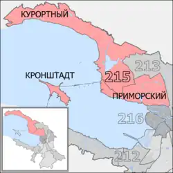 The North West constituency (No.215[a]) is a Russian legislative constituency in Saint Petersburg. It covers upscale northwestern Saint Petersburg as well as Kronshtadt.