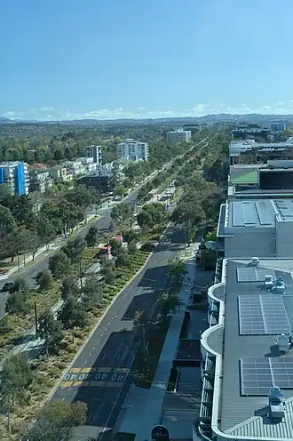 Looking north along Northbourne Avenue, viewed from the top floor of Civic Quarter 2