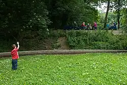 The park consists of the woodland, parkland, allotments and the Sir Norman Rae playing fields. The playing fields were previously the site of the nine-hole Shipley Golf Course which had been on the site since 1897.[11] The 18-hole Northcliffe Golf Club now straddles the north and western edges of the park, though some evidence of the previous golf course on the playing fields can be seen.[12][11] Bowling, tennis and cricket are available to play in the park with the addition of a fenced-in play area for children.[13] During the Second World War, crops were grown in the park by Land Army girls for the war effort.[14]