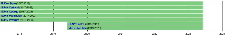 State University of New York at Oswego | Oswego, New York | Lakers | 1861 | Public | 8,909 | 2017 | |