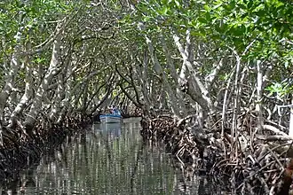 The Northern Honduras mangroves form an ecoregion in the mangroves biome, as defined by the World Wildlife Fund. This ecoregion stretches along most of the Caribbean coast of Honduras, up to the east of Amatique Bay in Guatemala. It covers an area of 1036 km2.[2] The ecoregion is threatened by the expansion of agriculture and livestock production.[2]