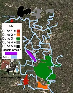 The eight sand dunes were formed 40,000 years during huge sandstorms over many years. It is one of the biggest sand-dune sights in the Central Coast of New South Wales.[1]