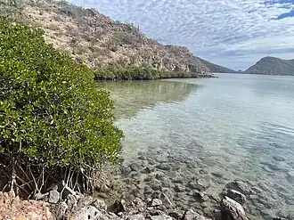 Mangrove areas on the eastern coast of the Baja California Peninsula include El Mogote and El Conchalito on the Ensenada de la Paz.