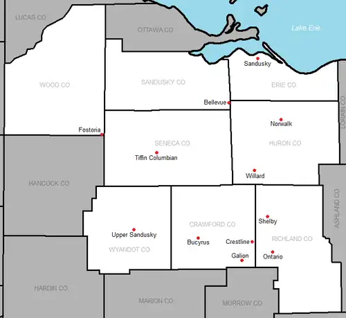 1952-53 | Shelby, Upper Sandusky | Norwalk, Shelby | Bellevue, Bucyrus, Shelby | Started 2008-09 | Bucyrus | Bellevue | |||||