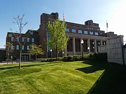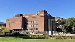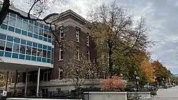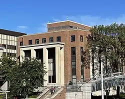 Built to replace Pattee Hall as the home of the university's Law School at the request of its third dean Everett Fraser—after whom the building was named—as he believed Pattee's classrooms were inadequate and its library too flammable. The Law School remained at Fraser Hall for 50 years until it moved to Mondale Hall,[29] after which Fraser became a multi-purpose building. It was expanded once in the 1950s but received no structural upgrades for almost 70 years afterwards, resulting in the approval of a $144.7 million expansion by the State Legislature in 2023.[30] The state's grant covers two-thirds of the cost, while the remaining third is set to be paid by the College of Science and Engineering over the course of 20 years.[26] Construction began in September of that year, and is expected to last through 2025. The original expansion is to be removed, while 18 new chemistry labs, collaboration spaces, and general-purpose classrooms will be added.[30]