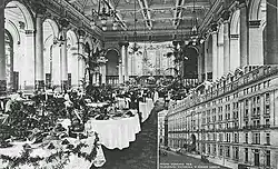 One of the largest buildings on the newly built Northumberland Avenue was the 500-bedroom Hotel Victoria, which in its arched entrance, and oriel window above it, imitated Northumberland House. During the Second World War it was taken over by the Ministry of Defence and renamed Northumberland House. It is now known as No. 8 Northumberland Avenue.[12]