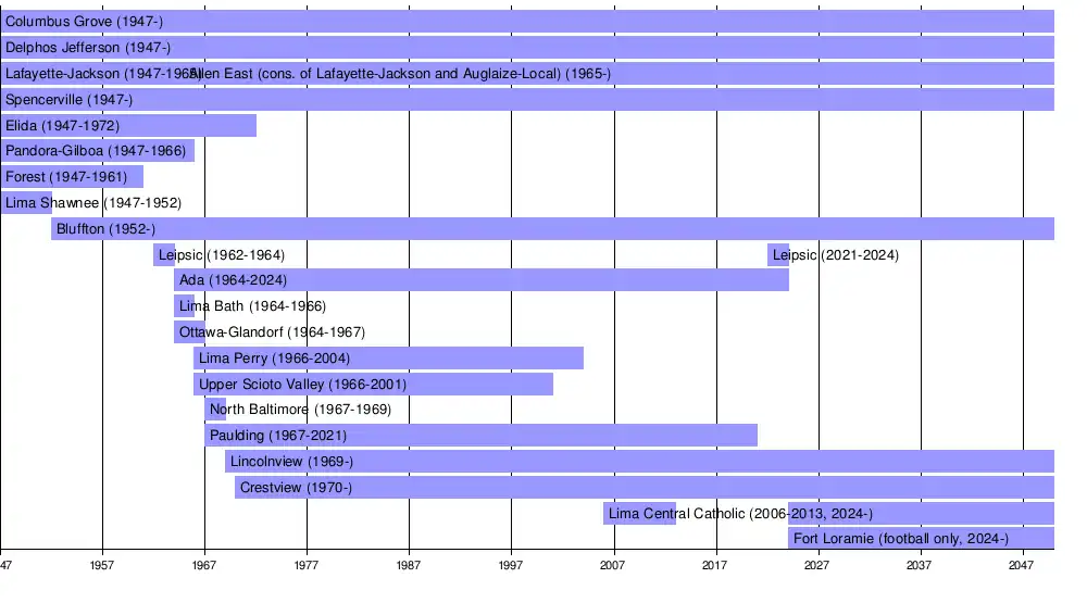 - 1966: Lima Perry and Upper Scioto Valley join.