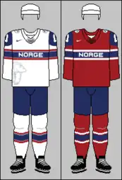 The Norway men's national ice hockey team is the national ice hockey team from Norway that participates at the IIHF World Championships. The team is governed by the Norwegian Ice Hockey Association and is coached by Petter Thoresen.