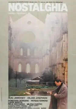 Nostalghia[a] (released as Nostalgia in the United Kingdom) is a 1983 drama film directed by Andrei Tarkovsky and starring Oleg Yankovsky, Domiziana Giordano and Erland Josephson. Tarkovsky co-wrote the screenplay with Tonino Guerra.[2]
