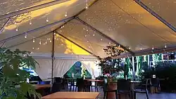 Nostrana's "sister" wine bar, Enoteca Nostrana, opened next door to the restaurant in 2018.[41][42] The 1,500-square-foot (140 m2),[43] 40-seat bar emphasizes European and natural wines and has a modern aesthetic compared to Nostrana's "rustic" atmosphere.[44][45] Enoteca Nostrana's interior features Italian design and a two-story wine cellar made of glass and steel, capable of storing 3,000 bottles.[46] The bar's opening selection featured 130 wines.[47]