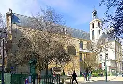 The church was founded by the Serfs de Marie, a community of monks founded in 1223 in Marseille, who followed the rules of Saint Augustine, and wore a black robe with a white mantle. With the support of King Louis XIII, they moved to Paris, and were given a large plot of land in the Marais district, just outside the city walls, formerly owned by the Order of the Knights Templar. It extended the length of the old rue de la Petite Parchemerie (now rue des Blancs-Manteaux) just outside the city walls in the Marais district. They built their first church there in 1258. Soon afterwards, However, in 1274, the Second Council of Lyon, held by the Vatican, decided to dissolve twenty-two different religious orders, including the Serfs de Marie. The abbey was transferred to the Order of the Brothers of Saint Guillaume of Malval and then, in 1618, to the Benedictine monks of the Order of Saint Maurus, who placed the novice monks there for their education. The monks no longer wore the white mantle, but the name "Blancs-Manteaux" stayed with the church.[2]